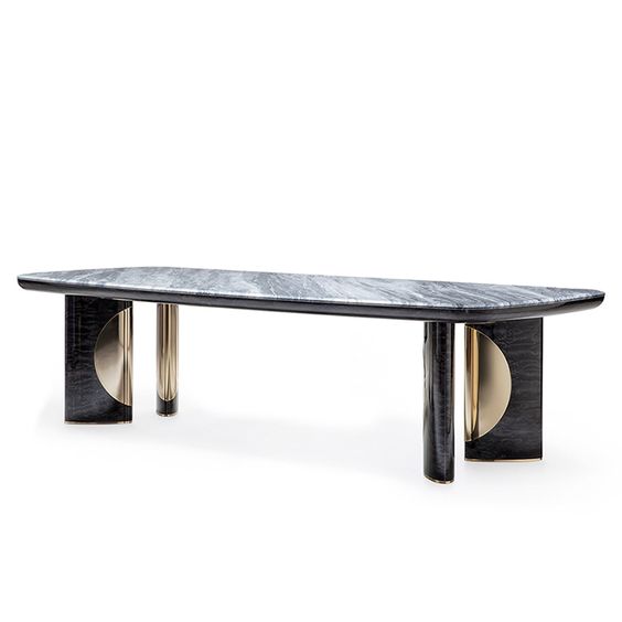 Bàn ăn David Vera Bella được kết từ gỗ Acrylic Lacquer bóng , đá marble và inox mạ vàng bóng PVD cao cấp .