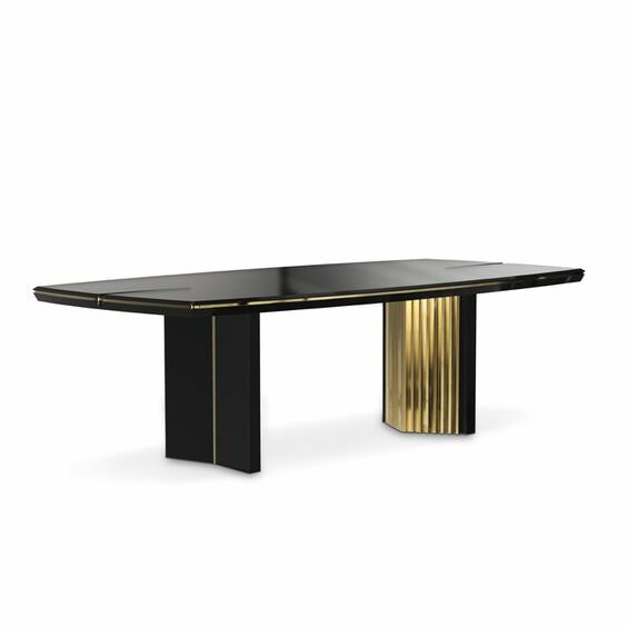 Bàn ăn David Royalty được kết hợp từ gỗ Acrylic Lacquer bóng và inox mạ vàng PVD bóng cao cấp .