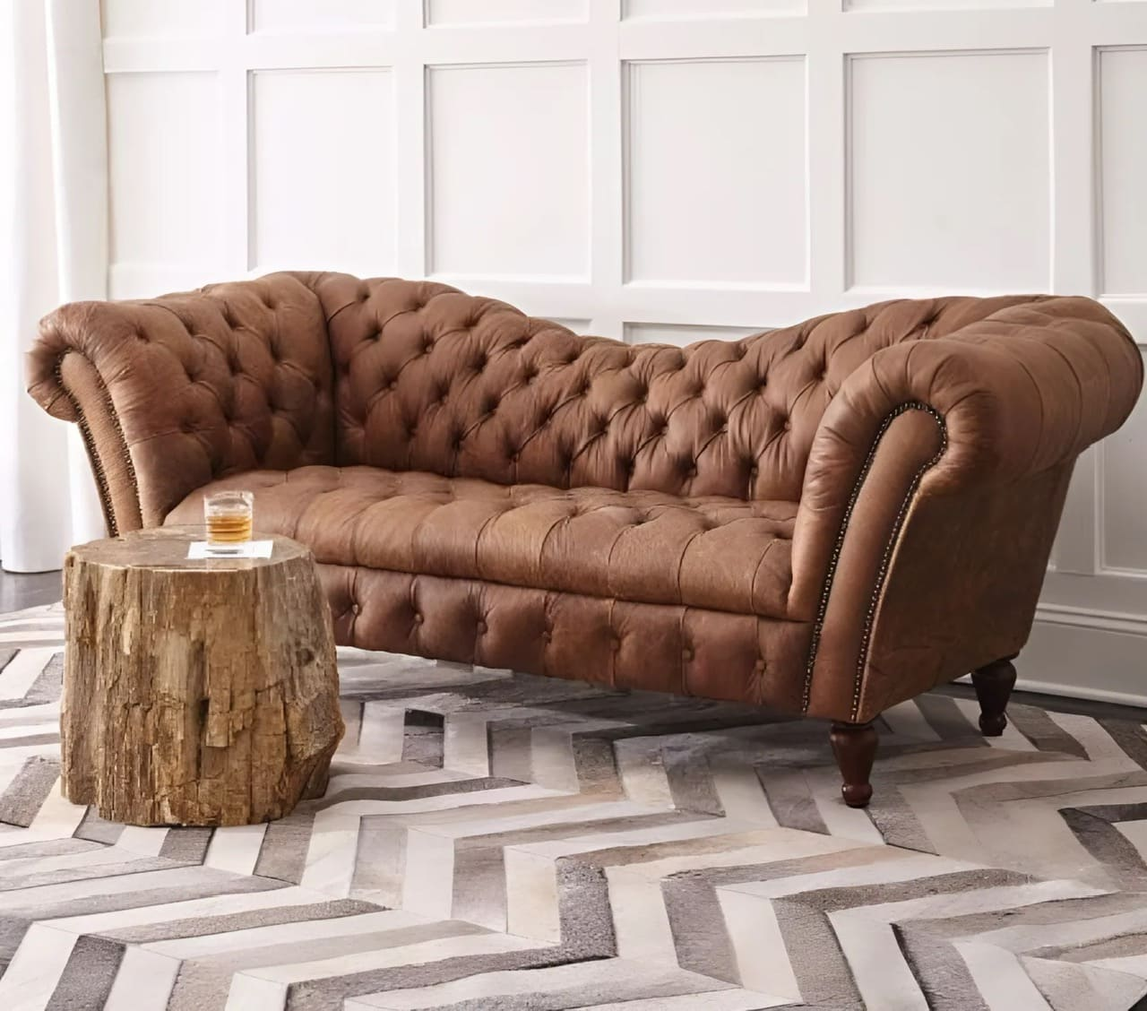 Sofa David Durable Classic sản xuất từ khung gỗ Oak tự nhiên bọc da bò 100% và mix nút đồng cổ .