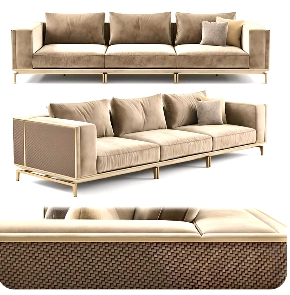 Sofa David Grandio được sản xuất làm từ khung gỗ Oak tự nhiên mix viền khung chân inox mạ vàng mờ bọc da bò thật 100% mix hậu sofa bọc vải bố thô cao cấp .