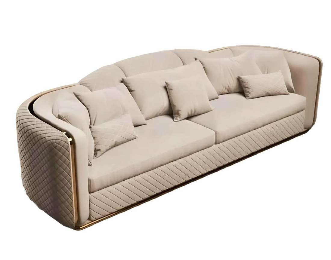 Sofa David Imperial sản xuất làm khung xương từ gỗ Oak tự nhiên mix chạy viền frame border inox mạ vàng mờ và bọc vải cao cấp theo nhu cầu .